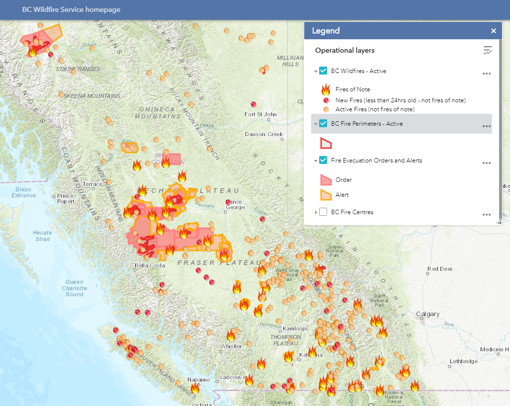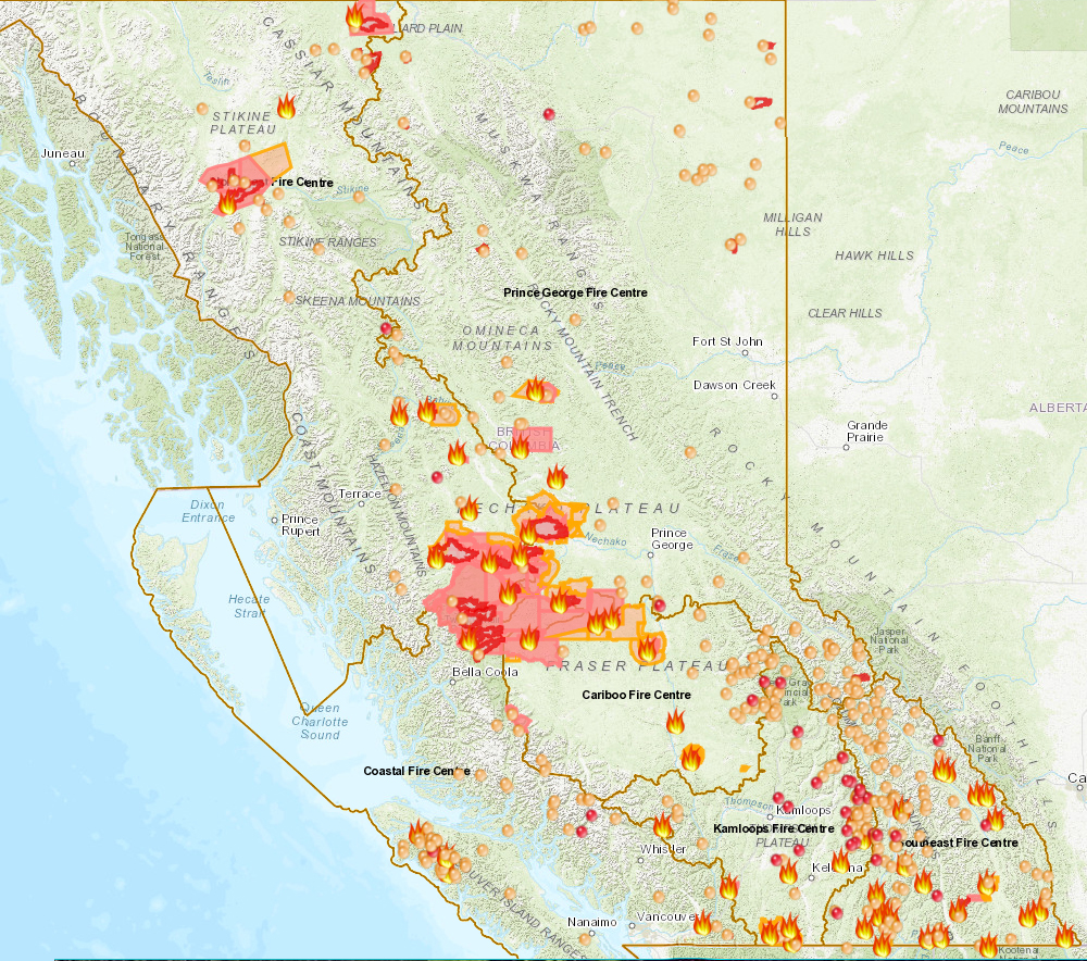 Bc fire map 2018. The bc wildfire service has provided a map of where the fires are located it may not load in high traffic times so you might need to be patient. August 15 2018 september 7 2018. Updated july 25 at 4 00 p m. There are currently no evacuation alerts or orders for the central okanagan.