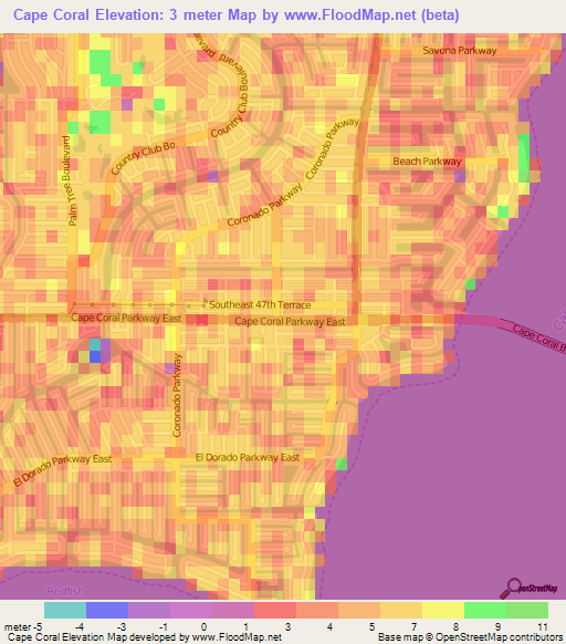 Below is the elevation map of cape coral us which displays range of elevation with different colours. The maps also provides idea of topography and contour of cape coral us. Elevation latitude and longitude of cape coral lee united states on the world topo map. Cape coral lee county florida united states of america free topographic maps visualization and sharing.