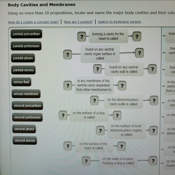 Switch to keyboard version parietal pericardium parietal peritoneum parietal pleura form 2. Florida wind speed map 2017. Body cavities and membranes using no more than 10 propositions locate and name the major body cavities and their subdivisions and associated membranes and list the major organs contained within them forming a cavity for the heart is called parietal pericardium found on any ventral cavity organ surface is called parietal pleura found on any ventral cavity wall is called parietal serosa serous fuid is any membrane of the ventral cavity separated from other membranes by serous membrane on the. Lines all body cavities and covers all internal organs.